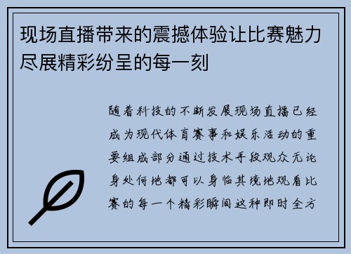现场直播带来的震撼体验让比赛魅力尽展精彩纷呈的每一刻